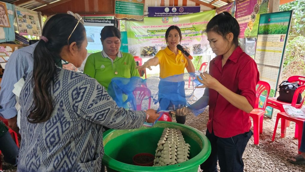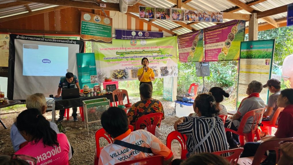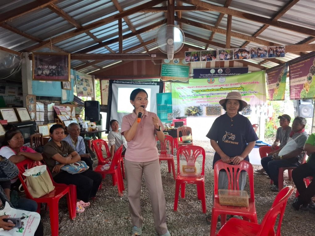 วันที่ 27 พฤศจิกายน 2567 นายสนอง เศษโม้ นักวิชาการส่งเสริมการเกษตรชำนาญการ รักษาการในตำแหน่งผู้อำนวยการศูนย์ส่งเสริมและพัฒนาอาชีพการเกษตร จังหวัดขอนแก่น มอบหมายให้นางลัดดาวัลย์ นูเร นักวิชาการส่งเสริมการเกษตรชำนาญการ และนางสาววราภรณ์ เรืองศักดิ์ นักวิชาการส่งเสริมการเกษตรปฏิบัติการ บรรยายให้ความรู้แก่เกษตรกรและผู้ที่สนใจการเลี้ยงจิ้งหรีด ผลิตภัณฑ์แปรรูปจากจิ้งหรีด และหนอนแมลงโปรตีน BSF จำนวน 50 ราย ตามโครงการเพิ่มประสิทธิภาพการเกษตรมูลค่าสูง สู่เกษตรนวัตกรรมชั้นสูง กิจกรรมการส่งเสริมการเลี้ยงแมลงเศรษฐกิจ กิจกรรมย่อยถ่ายทอดความรู้ให้เกษตรกรด้านแมลงเศรษฐกิจ (จิ้งหรีด) ณ วิสาหกิจชุมชนจิ้งหรีดอินทรีย์ หมู่ที่ 5 บ้านเพ็กเฟื้อย ตำบลหนองหว้า อำเภอเมือง จังหวัดหนองบัวลำภู