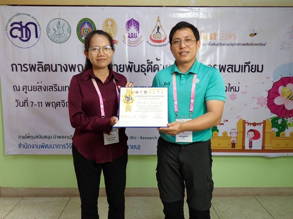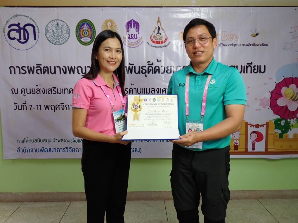 นักวิชาการส่งเสริมการเกษตรชำนาญการ และนางสาววราภรณ์ เรืองศักดิ์ นักวิชาการส่งเสริมการเกษตรปฏิบัติการ เข้ารับการอบรมเชิงปฏิบัติการ หลักสูตร “การผลิตนางพญาผึ้งสายพันธุ์ดีด้วยเทคนิคการผสมเทียมขั้นสูง สนับสนุนโดย สำนักงานพัฒนาการวิจัยการเกษตร (องค์การมหาชน) ณ ศูนย์ส่งเสริมเทคโนโลยีการเกษตรด้านแมลงเศรษฐกิจ จังหวัดเชียงใหม่