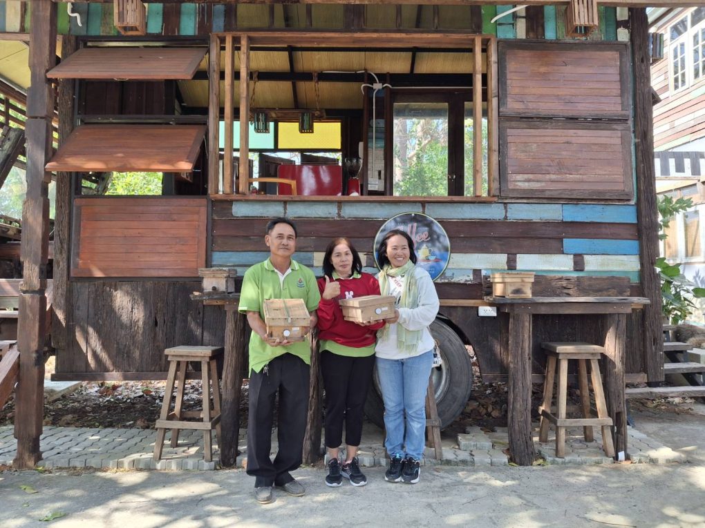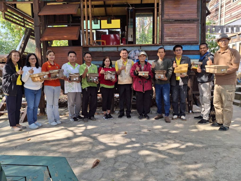 วันที่ 23 ธันวาคม 2567 นายสนอง เศษโม้ นักวิชาการส่งเสริมการเกษตรชำนาญการ รักษาการในตำแหน่งผู้อำนวยการศูนย์ส่งเสริมและพัฒนาอาชีพการเกษตร จังหวัดขอนแก่น พร้อมด้วยนางสาวเพ็ญนภา คามวุฒิ นักวิชาการส่งเสริมการเกษตร เป็นตัวแทนสำนักงานพัฒนาการวิจัยการเกษตร (องค์การมหาชน) ส่งมอบชันโรงพันธุ์ขนเงินให้กับเกษตรกรต้นแบบรุ่นที่ 1 จำนวน 10 ราย เพื่อเลี้ยงแยกขยายส่งต่อสายพันธุ์ให้กับสมาชิกในรุ่นถัดไป ณ สวนนาสามดี ตำบลศิลา อำเภอเมืองขอนแก่น จังหวัดขอนแก่น