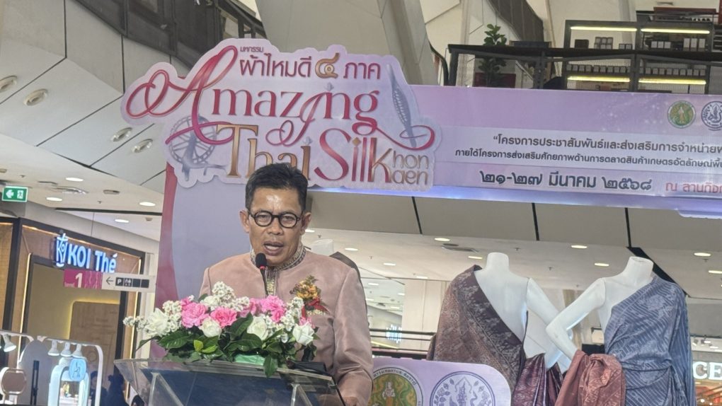 วันที่ 21 มีนาคม 2568 นางสาวทัศพร คำสีทา ผู้อำนวยการศูนย์ส่งเสริมและพัฒนาอาชีพการเกษตร จังหวัดขอนแก่น ร่วมงานผ้าไหมดี 4 ภาค Amazing Thai Silk Khonkaen “โครงการประชาสัมพันธ์ และส่งเสริมการจำหน่ายผ้าไหมและผลิตภัณฑ์หม่อนไหมดี 4 ภาค” ภายใต้โครงการส่งเสริมศักยภาพ ด้านการตลาดสินค้าเกษตรอัตลักษณ์พื้นถิ่น สู่ตลาดยุคใหม่ด้านหม่อนไหม ประจำปีงบประมาณ 2568 โดยมีนายนวนิตย์ พลเคน อธิบดีกรมหม่อนไหม เป็นประธานเปิดงาน ณ ลานกิจกรรม ชั้น 1 ศูนย์การค้าเซ็นทรัล ขอนแก่น