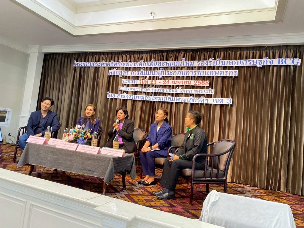 วันที่ 23 เมษายน 2568 นางสาวทัศพร คำสีทา ผู้อำนวยการศูนย์ส่งเสริมและพัฒนาอาชีพการเกษตร จังหวัดขอนแก่น พร้อมด้วยนางลัดดาวัลย์ นูเร นักวิชาการส่งเสริมการเกษตรชำนาญการ เข้าร่วมเสวนาการจัดการฟาร์มแมลง (ดักแด้/หนอนไหม) ทิศทาง แนวโน้มความต้องการด้าน การตลาดในประเทศและต่างประเทศ จัดโดยสำนักงานหม่อนไหมเฉลิมพระเกียรติฯ เขต 3 ณ โรงแรมราชาวดี ขอนแก่น แอร์พอร์ต โฮเทล