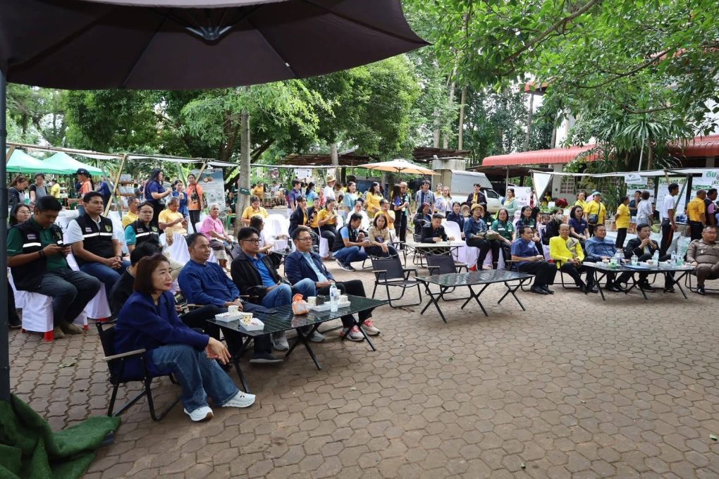 วันที่ 5 กรกฎาคม 2568 นางสาวทัศพร คำสีทา ผู้อำนวยการศูนย์ส่งเสริมและพัฒนาอาชีพการเกษตร จังหวัดขอนแก่น พร้อมด้วยนางสาวเพ็ญนภา คามวุฒิ นักวิชาการส่งเสริมการเกษตรชำนาญการ ร่วมงานเชื่อมโยงเครือข่ายการผลิต นวัตกรรม และการตลาด โครงการทดสอบและถ่ายทอดเทคโนโลยีเพื่อเพิ่มผลิตภาพการผลิตสินค้าเกษตร ไม้ยืนต้น เวทีเสวนาภาษากาแฟ ซึ่งทางศูนย์ฯ ได้นำชันโรงพันธุ์ขนเงิน และผลิตภัณฑ์เกี่ยวกับแมลงช่วยผสมเกสร