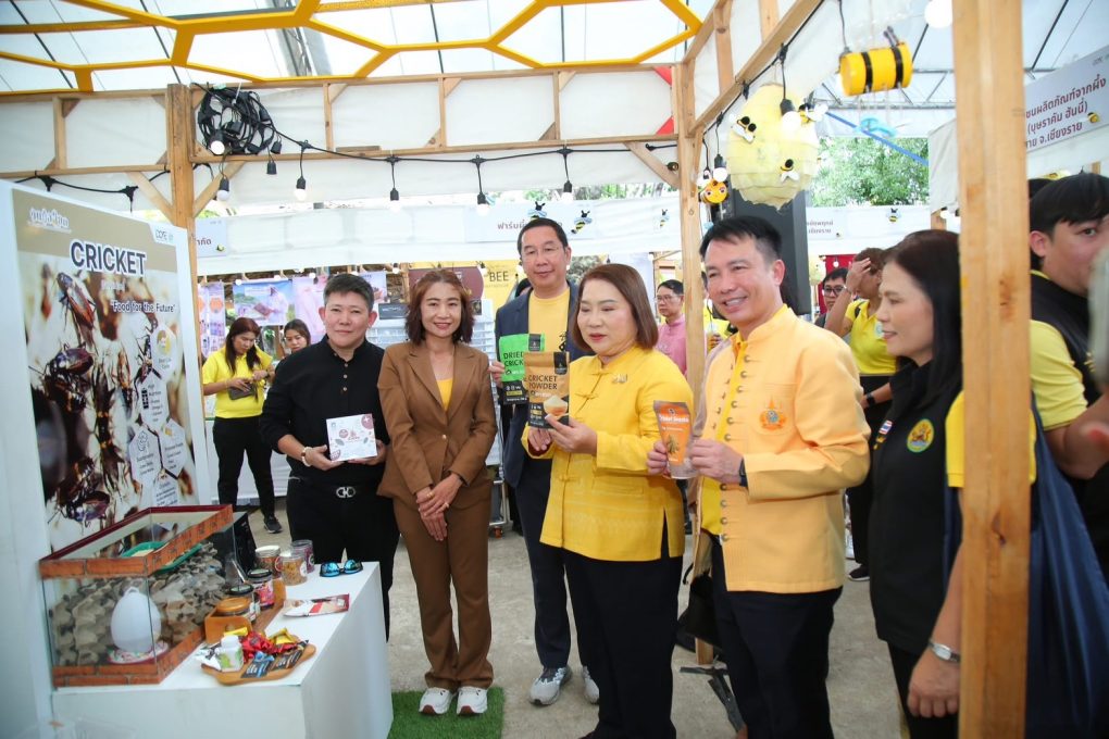 วันที่ 9 – 10 สิงหาคม 2568 นางสาวทัศพร คำสีทา ผู้อำนวยการศูนย์ส่งเสริมและพัฒนาอาชีพการเกษตร จังหวัดขอนแก่น พร้อมด้วยเจ้าหน้าที่ศูนย์ฯ ร่วมงานวันผึ้งโลก ภายใต้โครงการเชื่อมโยงเครือข่ายการผลิต การตลาดแมลงเศรษฐกิจ และประชาสัมพันธ์สินค้าแมลงเศรษฐกิจ ศูนย์ฯ ได้ร่วมจัดนิทรรศการด้านแมลงเศรษฐกิจ (จิ้งหรีด) นำเสนอผลงานแปรรูปผลิตภัณฑ์จากจิ้งหรีด ร่วมกับหน่วยงานกรมส่งเสริมการเกษตร หน่วยงานเอกชน และเกษตรกรผู้เลี้ยงแมลงเศรษฐกิจ ที่ออกร้านแสดงสินค้าภายในงาน โดยมี ดร.ณมาณิตา กลับบ้านเกาะ ผู้ช่วยรัฐมนตรีว่าการกระทรวงเกษตรและสหกรณ์ เป็นประธานเปิดงาน ณ ตลาดจริงใจ ตำบลป่าตัน อำเภอเมืองเชียงใหม่ จังหวัดเชียงใหม่และเยี่ยมเยียนเกษตรกรผู้เลี้ยงผึ้งโพรง ม่อนปูยารักษ์ผึ้งป่า ตำบลห้วยแก้ว อำเภอภูกามยาว จังหวัดพะเยา
