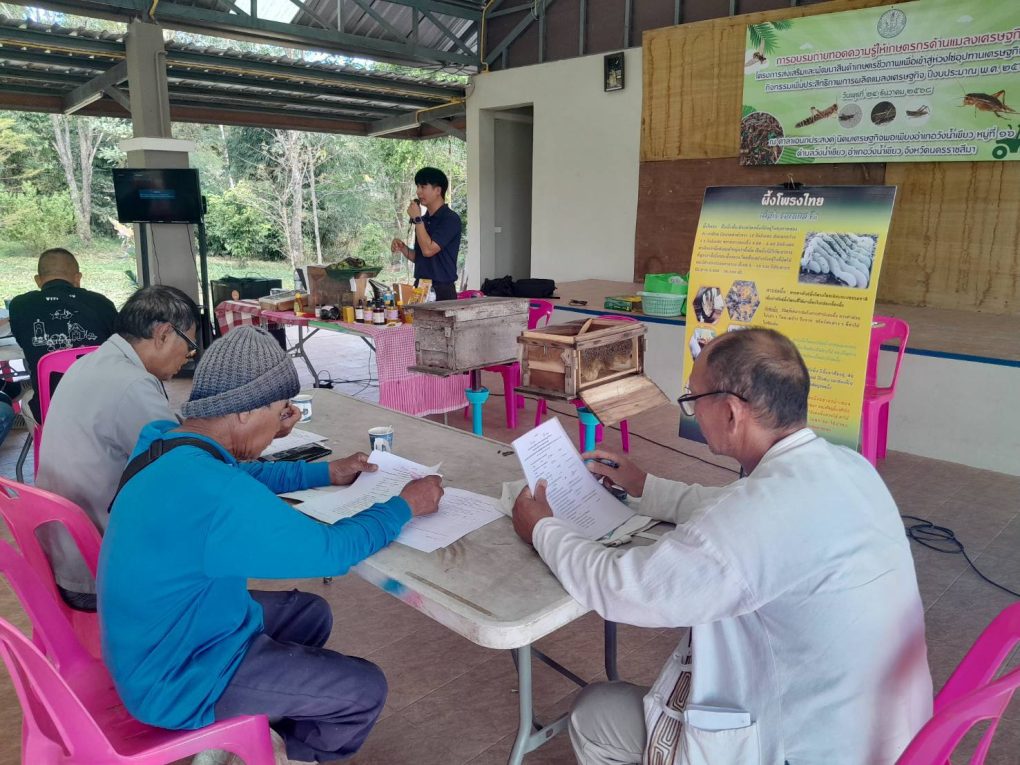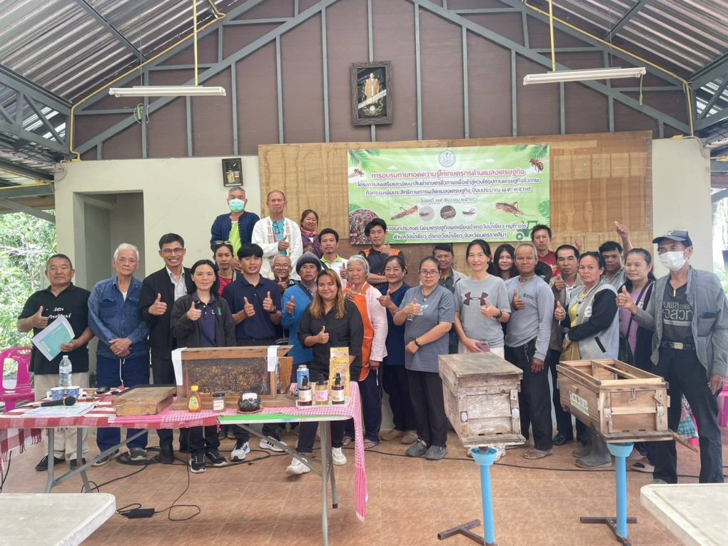 และนางสาวอรพรรณ วงพิมล นักวิชการส่งเสริมการเกษตร เป็นวิทยากรถ่ายทอดความรู้ด้านแมลงเศรษฐกิจ (ผึ้งโพรง) ให้แก่เกษตรกร จำนวน 20 ราย
