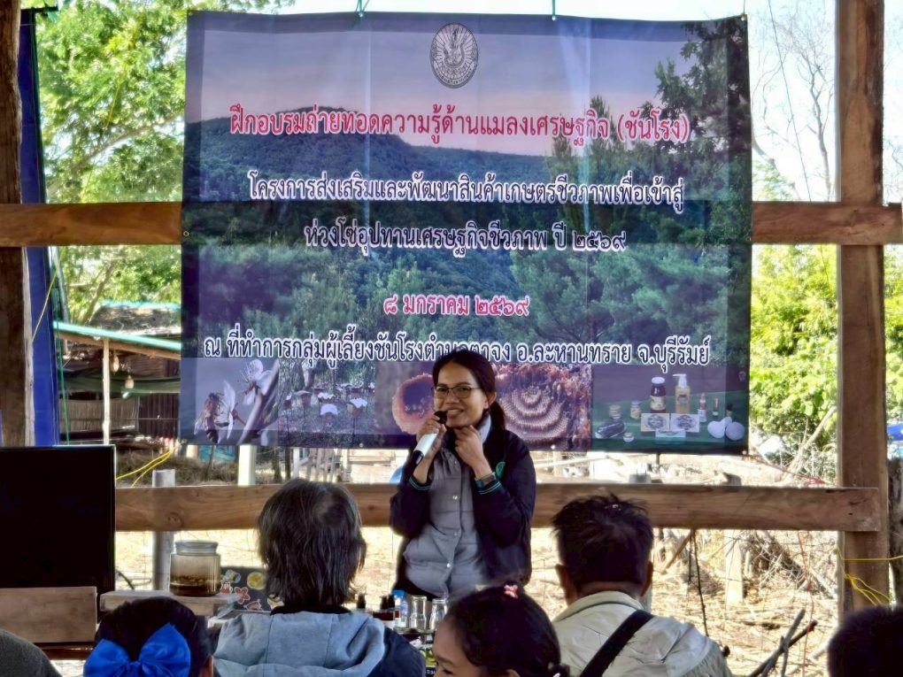 และเพิ่มประสิทธิภาพการผลิต ผลิตภัณฑ์จากชันโรง เพื่อให้ตรงตามความต้องการของตลาดตามโครงการส่งเสริมและพัฒนาสินค้าเกษตรชีวภาพเพื่อเข้าสู่ห่วงโซ่อุปทานเศรษฐกิจชีวภาพ ปี 2569 ณ ที่ทำการกลุ่มผู้เลี้ยงชันโรงตำบลตาจง อำเภอละหานทราย จังหวัดบุรีรัมย์