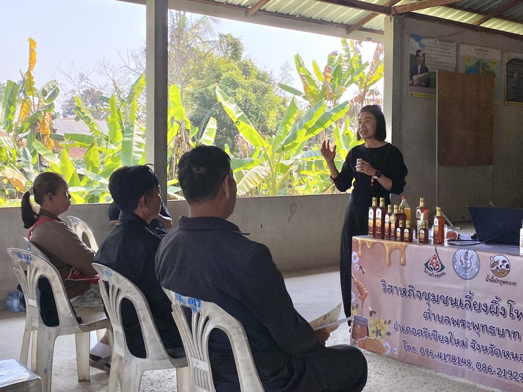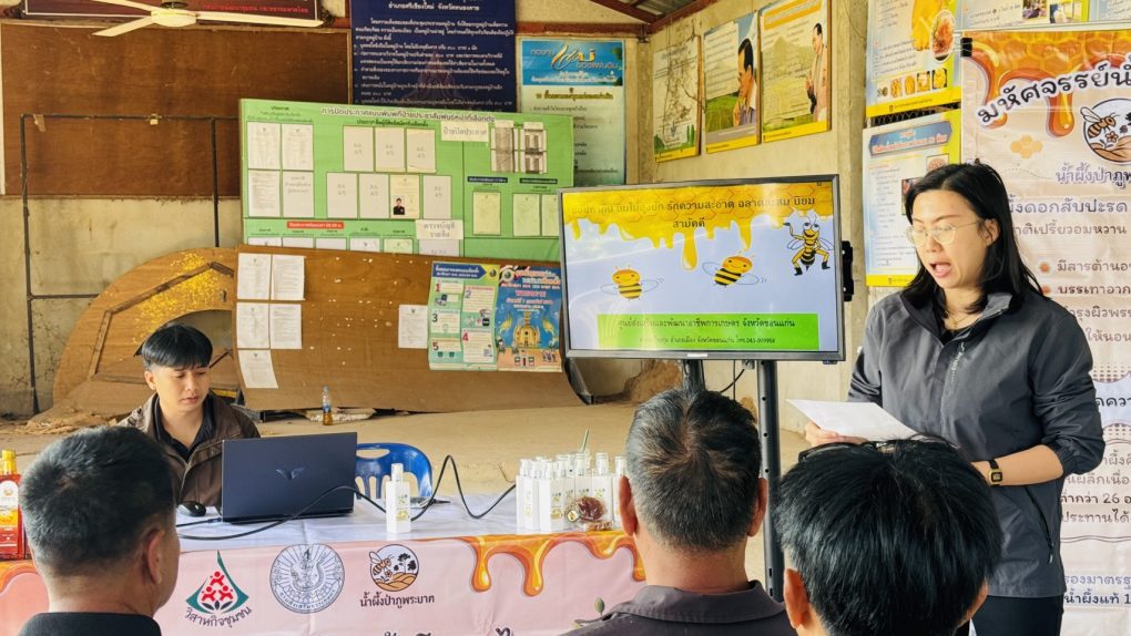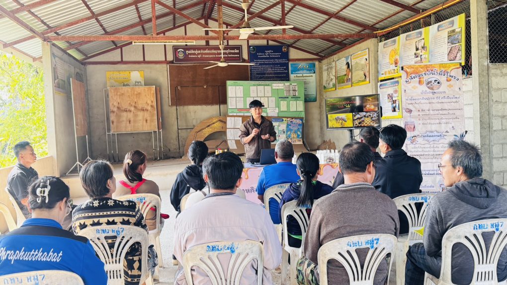 วันที่ 9 มกราคม 2569 นางสาวทัศพร คำสีทา ผู้อำนวยการศูนย์ส่งเสริมและพัฒนาอาชีพการเกษตร จังหวัดขอนแก่น พร้อมด้วยนายดนุพงศ์ วรรณพงศ์ นักวิชาการส่งเสริมการเกษตรปฏิบัติการ เป็นวิทยากรอบรมถ่ายทอดความรู้ด้านแมลงเศรษฐกิจ (ผึ้งโพรง) ให้กับเกษตรกร จำนวน 20 ราย หลักสูตรการเพิ่มประสิทธิภาพการผลิตแมลงเศรษฐกิจโครงการส่งเสริมและพัฒนาสินค้าเกษตรชีวภาพเพื่อเข้าสู่ห่วงโซ่อุปทานเศรษฐกิจชีวภาพ ณ ที่ทำการกลุ่มวิสาหกิจชุมชนผู้เลี้ยงผึ้งโพรงไทย หมู่ 7 ตำบลพระพุทธบาท