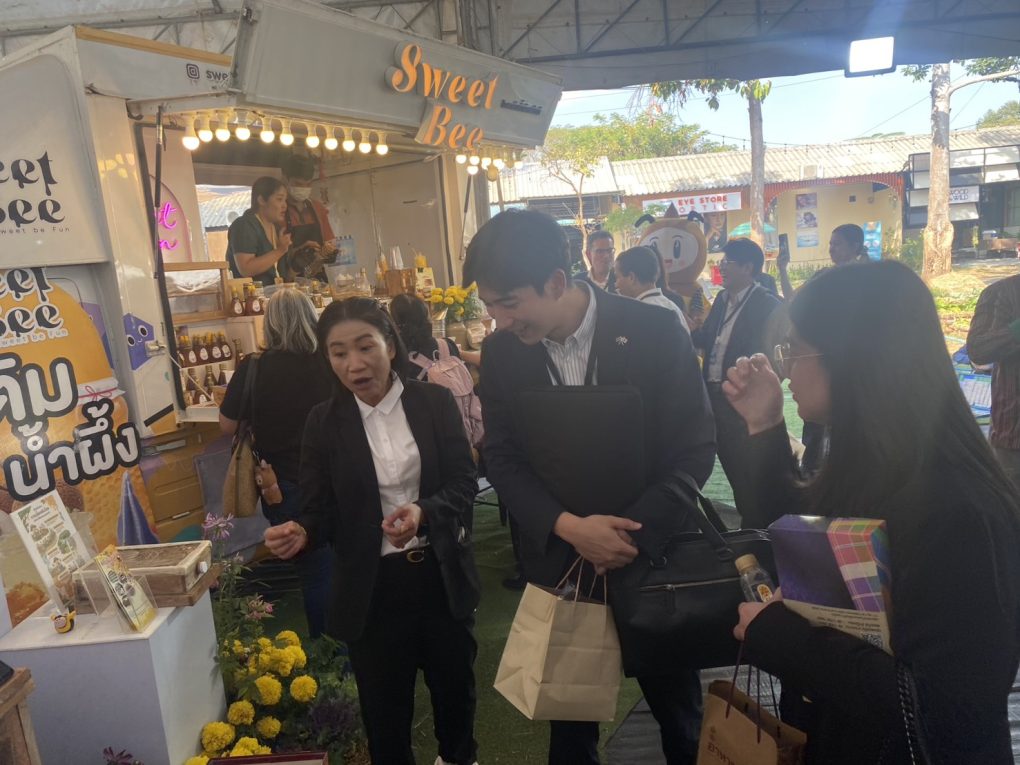วันที่ 29 มกราคม 2569 นางสาวทัศพร คำสีทา ผู้อำนวยการศูนย์ส่งเสริมและพัฒนาอาชีพการเกษตร จังหวัดขอนแก่น พร้อมด้วยนางสาวกฤตญกร อยู่โสนะ นักวิชาการส่งเสริมการเกษตรชำนาญการ และนายดนุพงศ์ วรรณพงศ์ นักวิชาการส่งเสริมการเกษตรปฏิบัติการ ร่วมต้อนรับคณะทูตฯ ประจำประเทศไทย พร้อมทั้งให้ข้อมูลด้านแมลงเศรษฐกิจ จิ้งหรีด, ผึ้ง, ชันโรง และครั่ง ที่ร่วมจัดนิทรรศการในงานวันเกษตรภาคอีสาน ประจำปี 2569 ISAN AGRI CULTURAL FAIR 2026 และประชาชนที่เข้าร่วมงาน