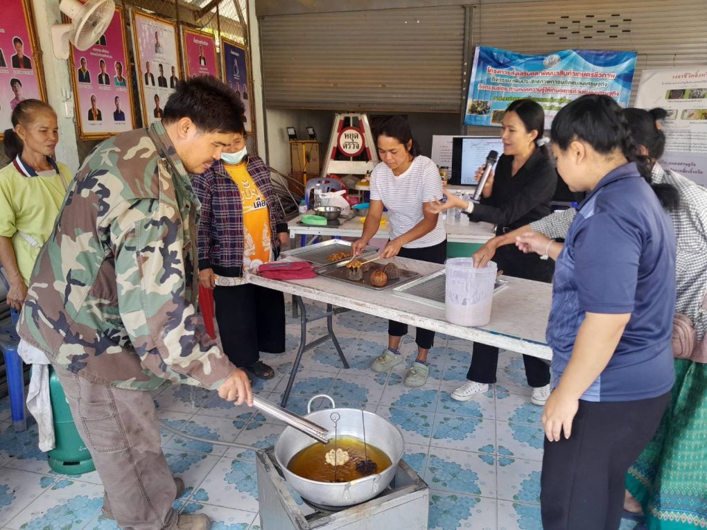 และนางสาวแก้วมณี พรหมพิทักษ์ เจ้าพนักงานการเกษตร ร่วมเป็นวิทยากรบรรยายถ่ายทอดความรู้ ด้านการเลี้ยงแมลงเศรษฐกิจ (จิ้งหรีด) และสาธิตการแปรรูปผลิตภัณฑ์จากจิ้งหรีด ขนมดอกจอกผสมผงจิ้งหรีด แก่เกษตรกรจำนวน 20 ราย เพื่อเสริมสร้างรายได้ให้กับเกษตรกร ตามโครงการส่งเสริมและพัฒนาสินค้าเกษตรเพื่อเข้าสู่ห่วงโซ่อุปทานเศรษฐกิจ กิจกรรมเพิ่มประสิทธิภาพการผลิตแมลงเศรษฐกิจ ณ ศาลาประชาคมบ้านนากอกคำ หมู่ที่ 20 ตำบลนากอก อำเภอศรีบุญเรือง จังหวัดหนองบัวลำภู
